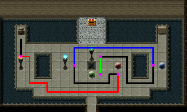 3. 石畳から、ヒントに従ってマップ右下にある石柱まで到達することで、青宝箱が出現する。