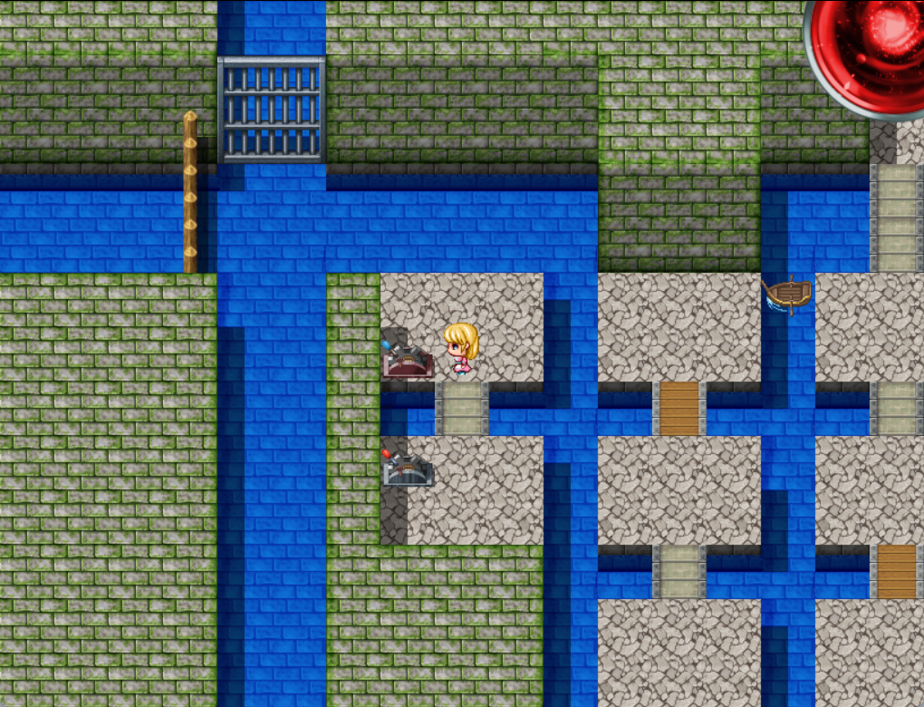 ② 船を画像の位置で降り、鉄のレバーを動かす (石の橋が横向きになる)
