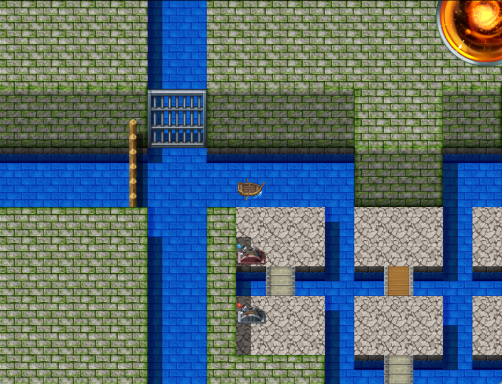 ② 船を画像の位置で降り、鉄のレバーを動かす (石の橋が横向きになる)
