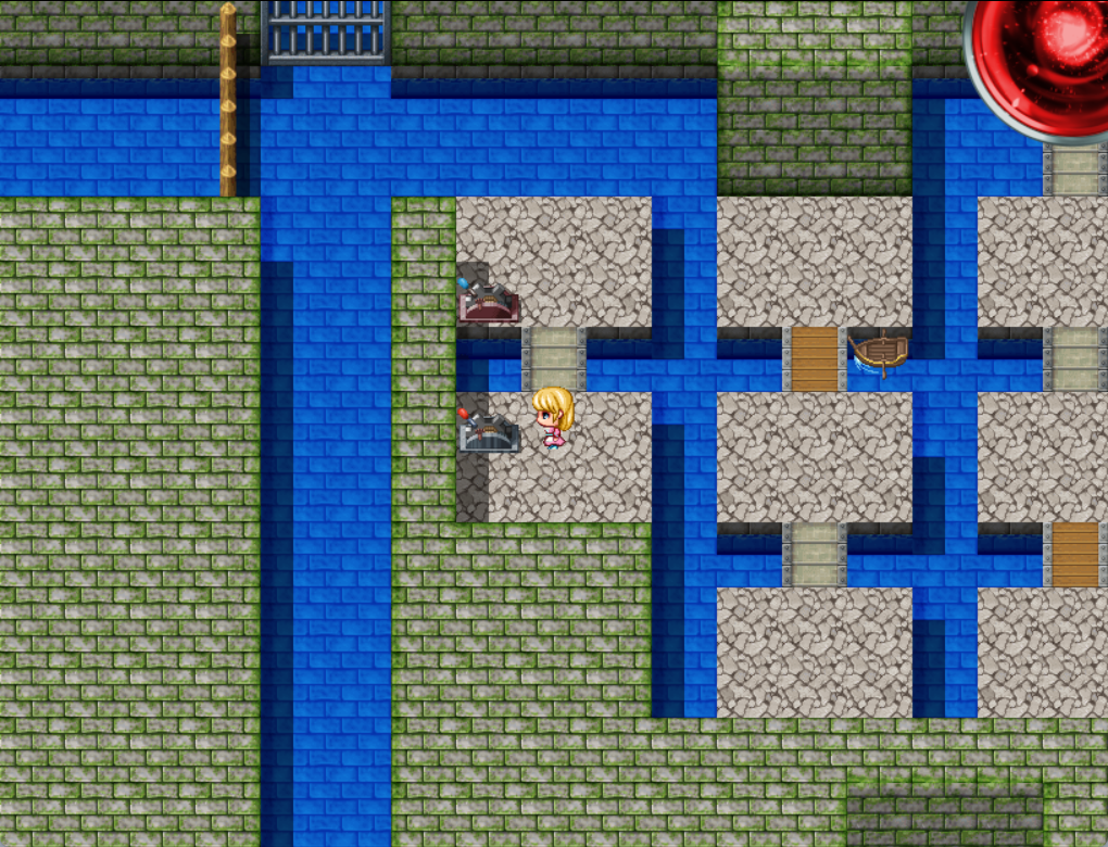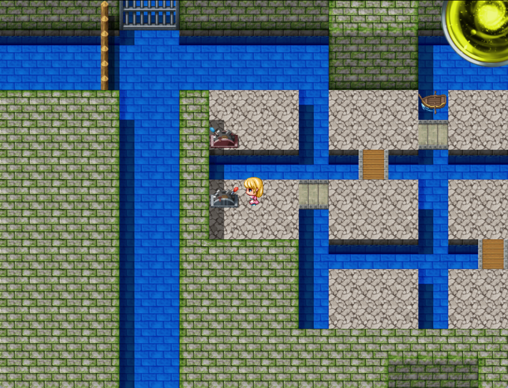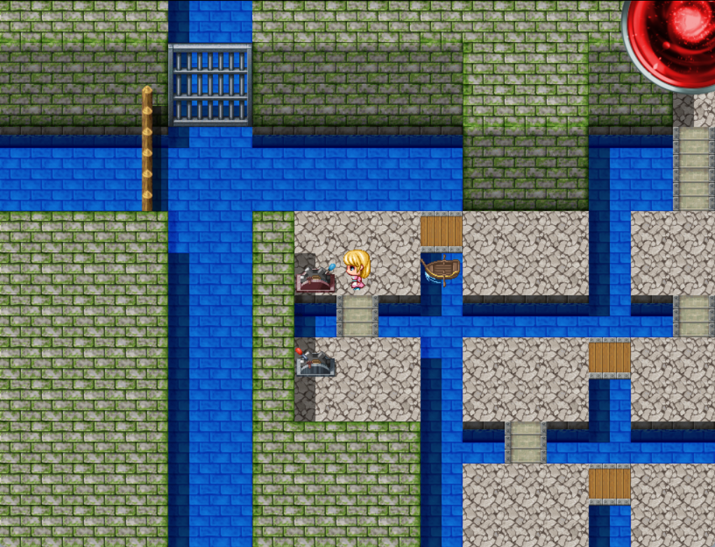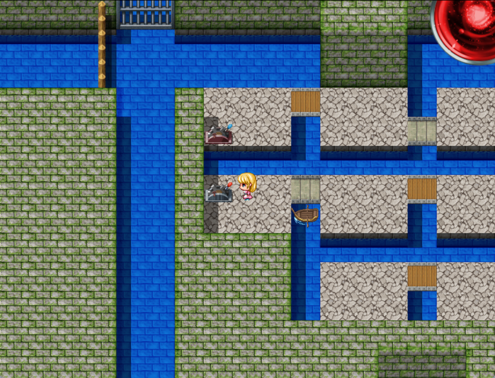 ⑤ 船を画像の位置で降り、鉄のレバーを動かすと右下側に進める。